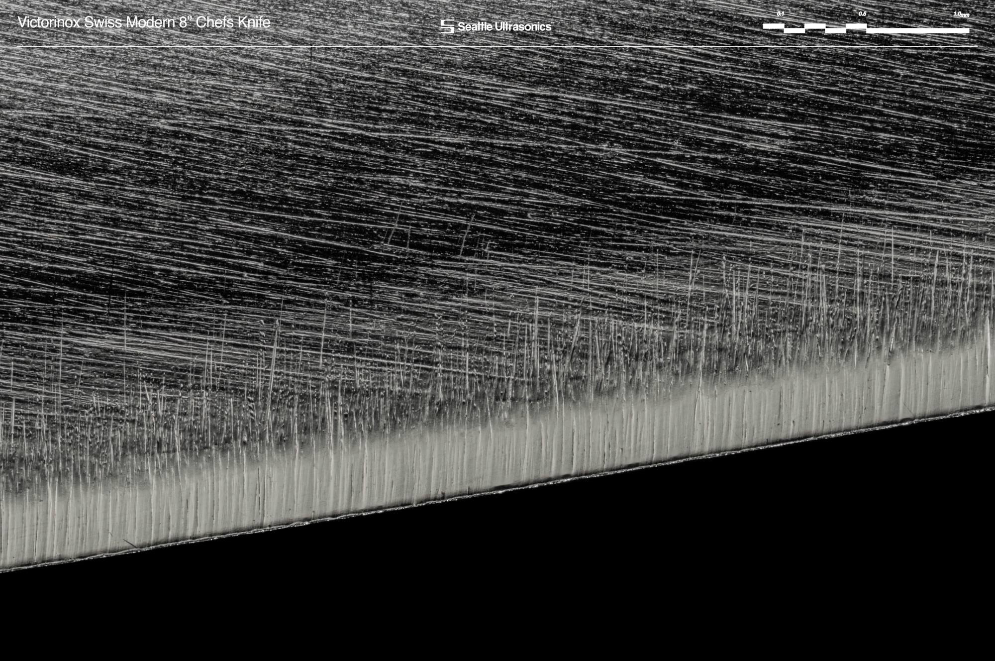 Each knife was photographed before use at high-magnification. These reveal features that indicate the quality of the blade’s construction, like the sharpness of the tip, the straightness of the choil, the evenness of the apex, and the smoothness of the sharpened edge. Learn more